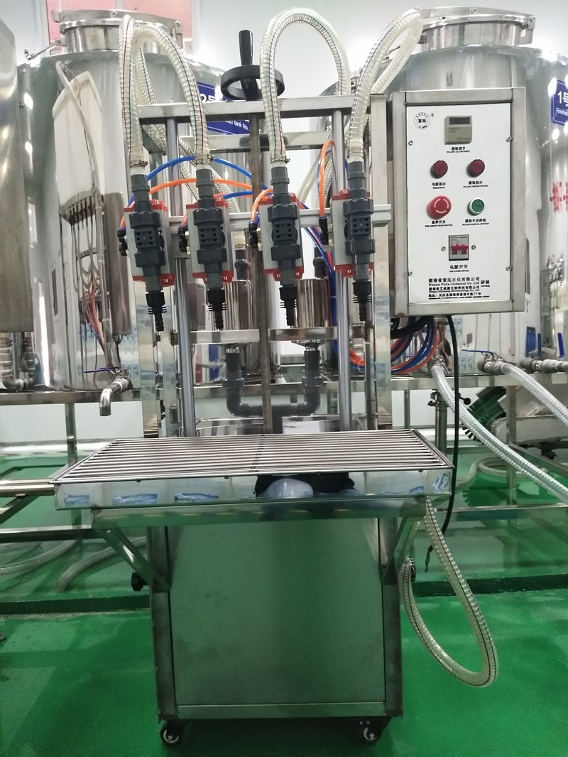 定量灌裝機:通過攪拌罐出來的成品,靜置放置后,無泡后,需要灌裝,手工灌裝不夠精準,效率低,需要一臺灌裝機來完成?;钊降亩抗嘌b機,可對不同高粘度流體進行灌裝,灌裝精準,操作簡單,便于維護且灌裝無滴漏。灌裝頭可自由選配,有2頭、4頭、6頭多種選擇。操作簡單,易上手。
