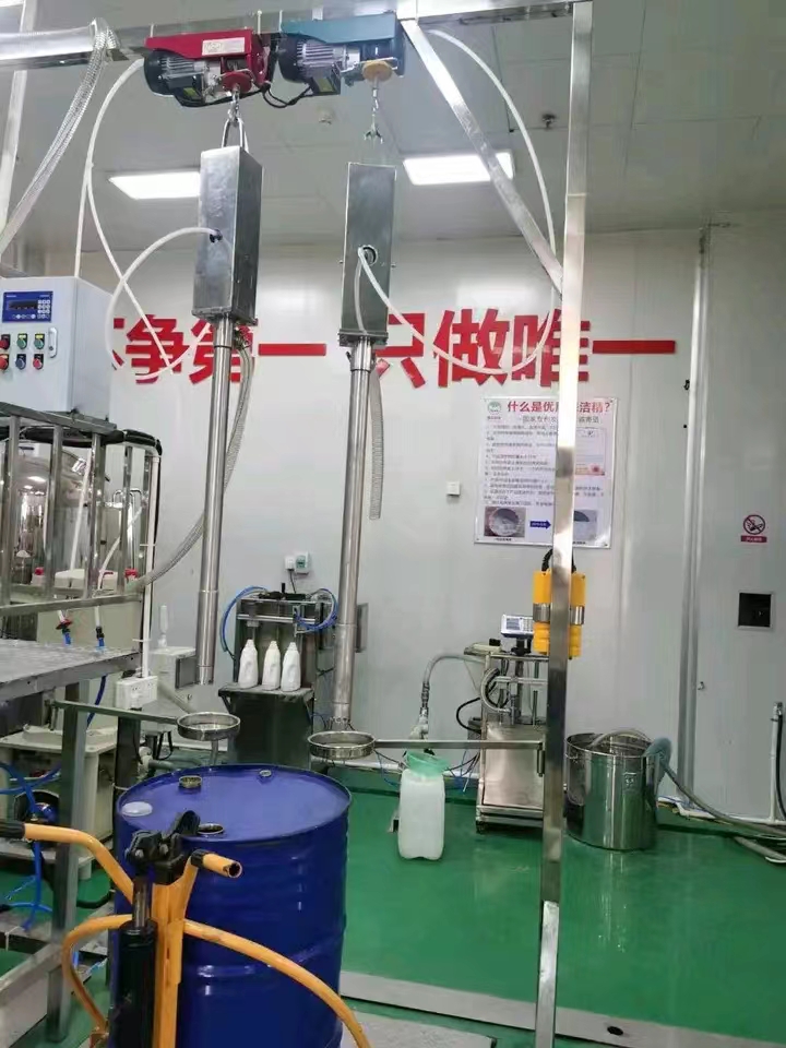 多項專利發明人王先軍 手機:150-7483-5702 手機:195-7316-0288磺酸AES加料一直困惑所有日化產品工廠老板,人工加料接觸皮膚危害人身健康,勞動力成本高,當采用失重自動感應裝置和柱塞氣動灌裝裝置后,每8分鐘左右就可以輕松完成一桶重達170公斤的一桶AES或一桶重達200公斤的磺酸或者AEO-9的加料過程,大大提高洗潔精洗衣液油污清洗劑及白鞋凈等產品的生產效率,特別適合洗滌劑等日化產品工廠使用。