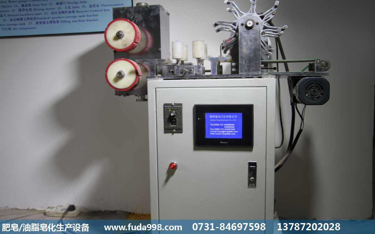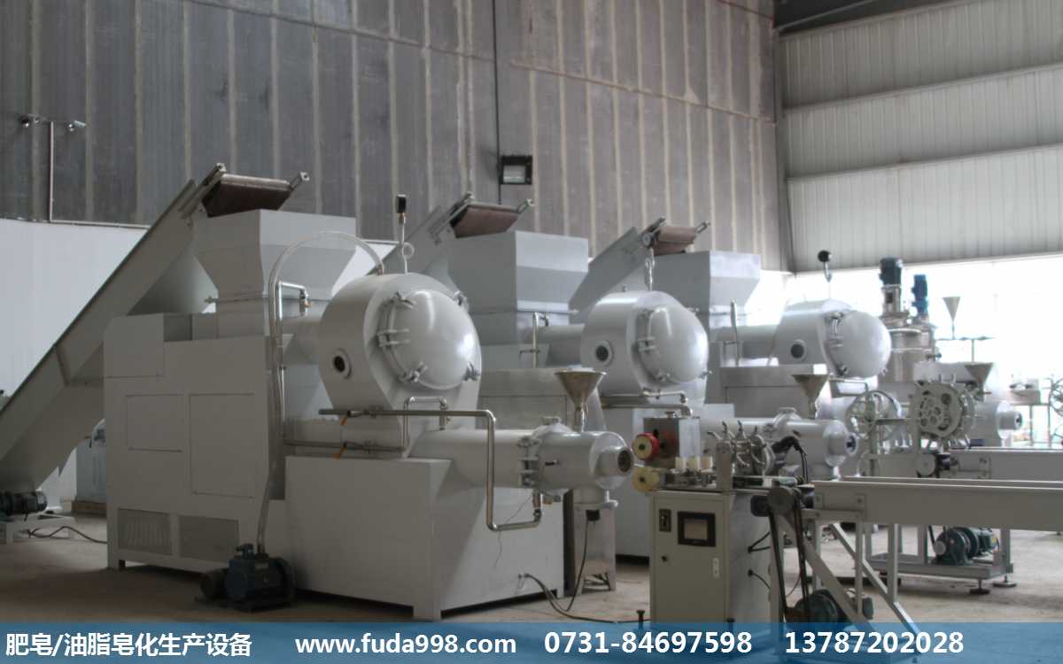 采用富達日化FZ-2000油脂皂化、肥皂成套生產設備,可以從獲取動物油脂,通過油脂的皂化,生產皂基,皂基干燥后,加上配料,壓條,切塊,打印,包裝,最后制作成肥皂。