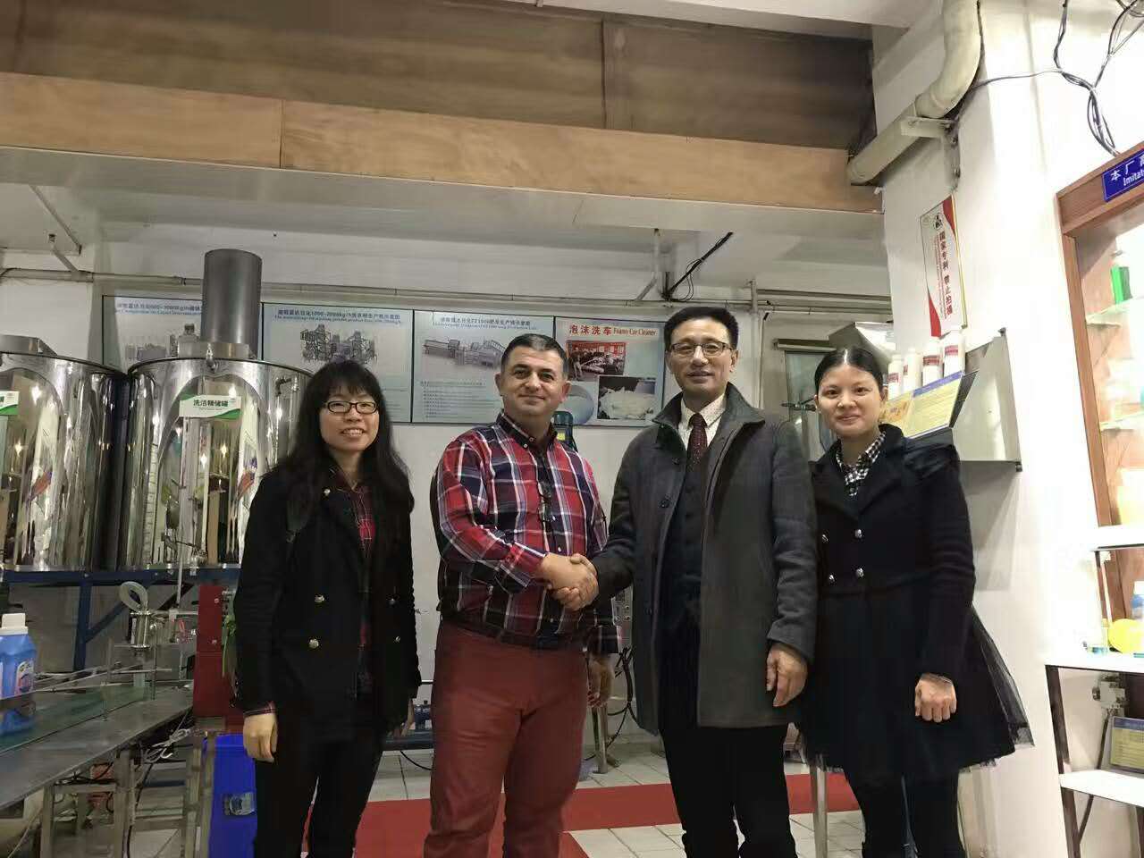多項專利發明人王先軍 手機:150-7483-5702 手機:195-7316-0288法國客戶不遠萬里來到湖南富達日化考察洗滌產品生產項目。