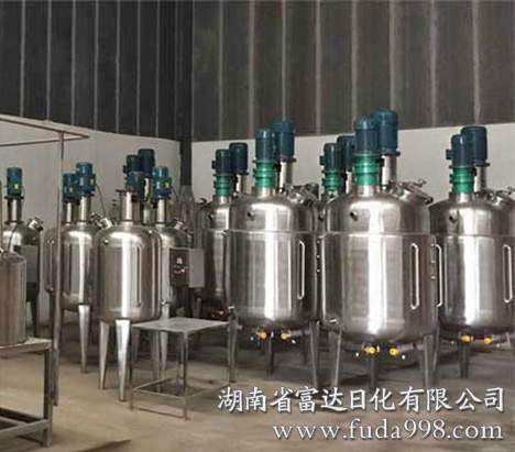 洗潔精生產設備需要實現自動化生產,操作簡單,容易上手,減少人力成本的投入,1-2人即可操作。投資者可根據自已區域市場情況及自身財力選擇不同型號。洗潔精生產設備的結構決定了洗潔精的質量。目前市面上的洗潔精設備都是靠機械外力單純攪拌成型的設備。單純攪拌成型的缺點就是產品只是暫時分散,原材料達不到充分的分散和乳化,產品很容易產生分層、沉淀,變質變臭的現象。目前正規廠家全部采用的是機械乳化工藝,電機帶動不銹鋼剪切乳化頭,可以把原料進行充分乳化和溶解,做出的產品保質期長,顏色均勻、統一,不會分層、沉淀,完全達到國家要求的保質期限。富達日化洗液洗滌劑設備與傳統攪拌設備不同;設備上部有高速等離子剪切乳化和攪拌同步,設備下部有螺桿泵或離心乳化泵循環乳化和自動排料;比傳統攪拌機節省時間3倍以上,產品保質期延長2倍以上,由于乳化好、產品濃度大、去污力更強,同等成本下比傳統攪拌機生產的產品提高去污指數30%-40%。立白集團、藍思科技等正規大廠也從本廠采購此類設備。