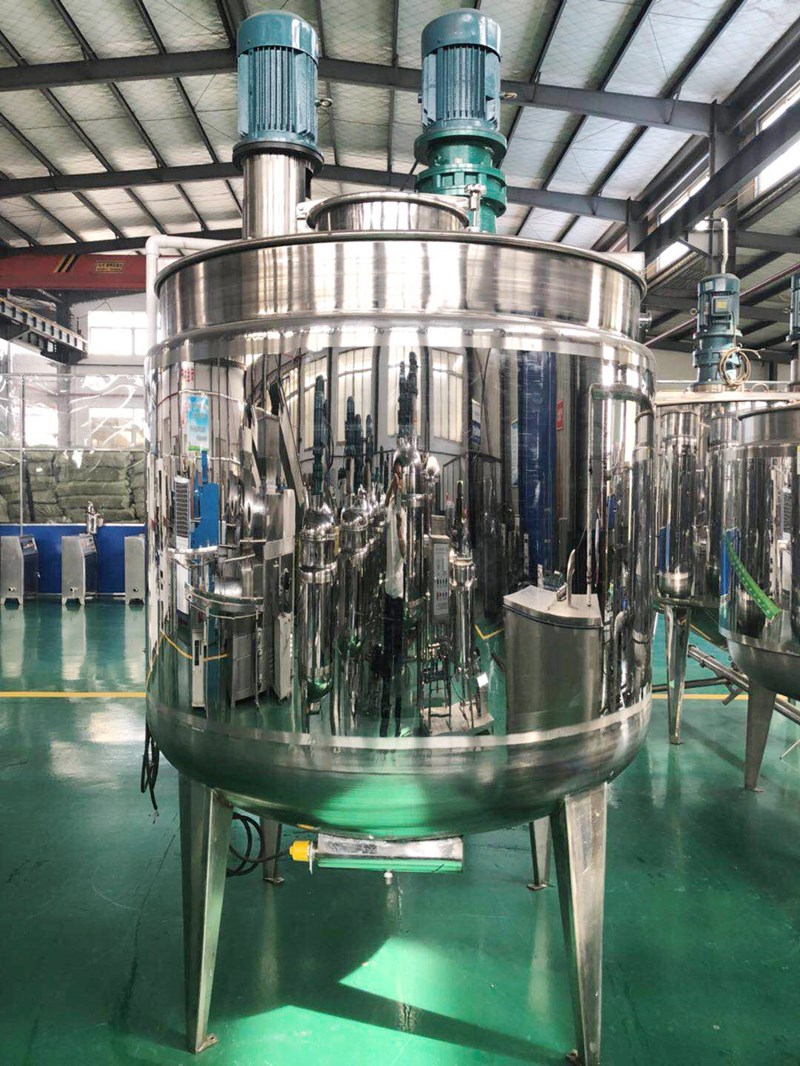 反應釜又稱為攪拌罐,具有攪拌、加熱、乳化、混合等多功能的反應容器,可以用來生產各種液體產品,例如:洗衣液、洗手液、洗潔精、防凍液、玻璃水、消毒液、洗發水、沐浴露、花露水等等。通過攪拌器的高速轉動,產生離心力,物料在離心力的作用下充分混合、均質進而得到半成品。